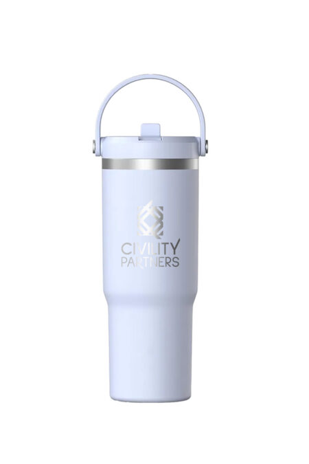 The 32oz Hydrapeak Nomad Tumbler features triple-layered stainless steel and double-wall insulation to keep your drinks ice cold for 24 hours or piping hot for 12. Its leakproof folding-straw lid and non-slip rubber base prevent spills and lock in every drop. Designed for convenience, the built-in carry handle and cup holder–friendly base make it perfect for on-the-go hydration. Stay refreshed wherever you roam with this durable, travel-ready tumbler. It features a laser engrave decoration.
